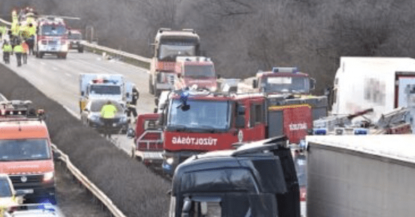 Kamionok karamboloztak, tíz kilométeres a dugó az M1-esenA határ felé vezető oldalon már tíz kilométeres, a főváros felé hat kilométeres a torlódás az M1-es autópályán egy baleset miatt. Hétfő reggeli helyzetjelentés az utakról.Az M1-es autópályán, a Herceghalomnál korábban kiépített terelésnél, a 30-as kilométernél több kamion ütközött össze – tájékoztatott hétfő reggel az Útinform.A Hegyeshalom felé vezető oldalon egy sávon megindult a forgalom, illetve Budapest felé is csak egy, a saját oldalán vezető sáv járható.