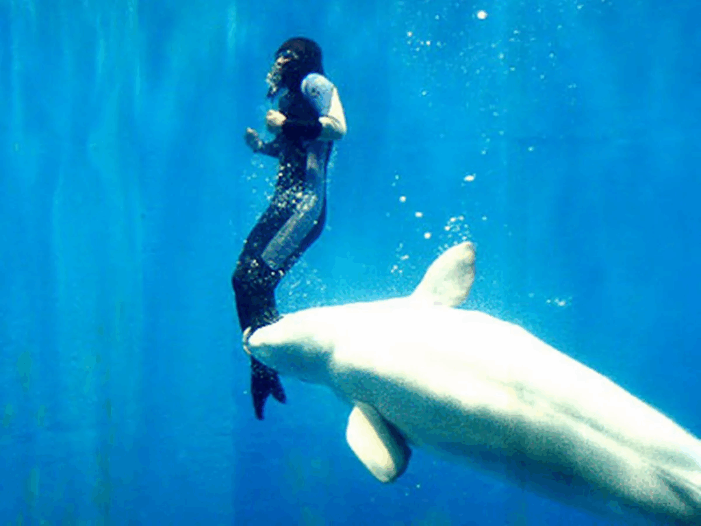 Yang, aki már biztosra vette, hogy megfullad, hirtelen reményt érzett, amikor egy váratlan erő felfelé tolta: Mila, az egyik beluga bálna volt az, aki gyengéden megragadta a lábát, és visszahúzta a felszínre.